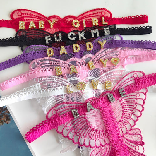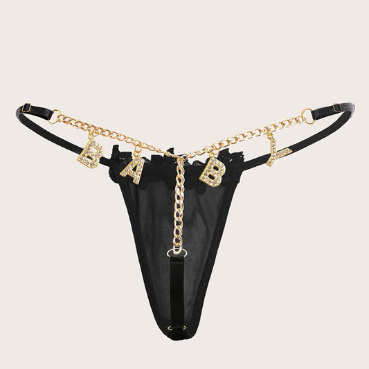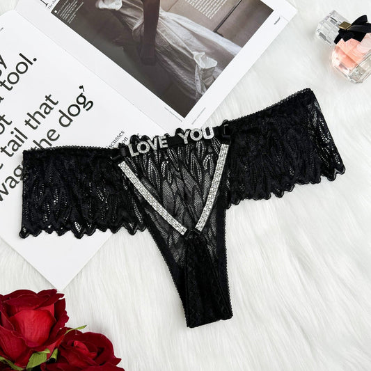Rhinestone Letter Lace Sexy Thong