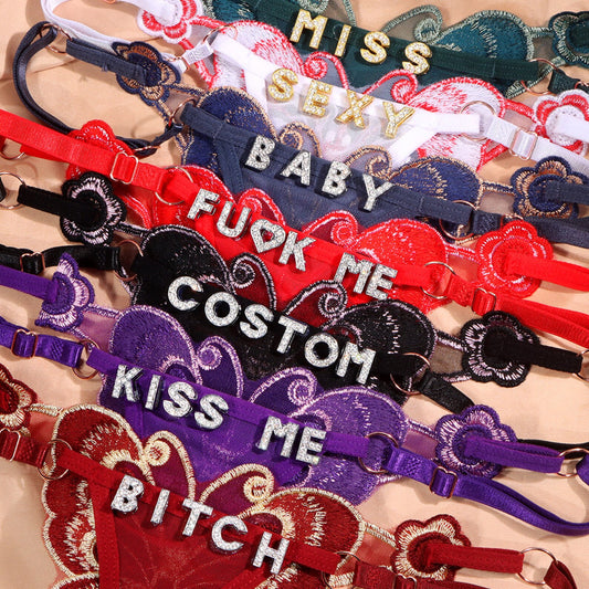 Seductive Narrow-edge French Temptation Hollow Customized Rhinestone Alphabet Thong