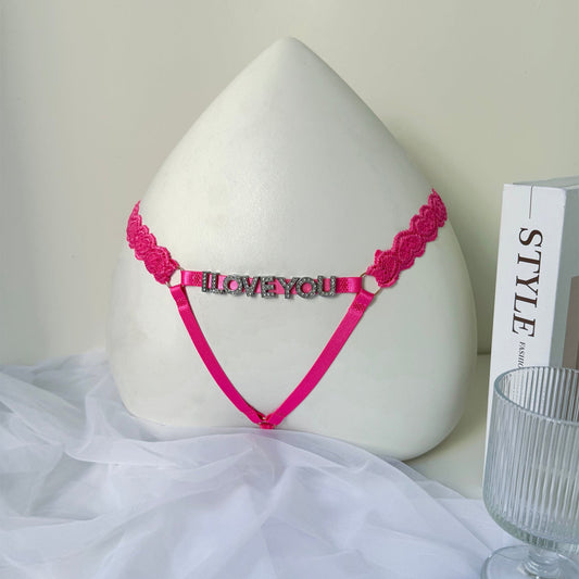Seductive Narrow-edge French Temptation Hollow Customized Rhinestone Alphabet Thong